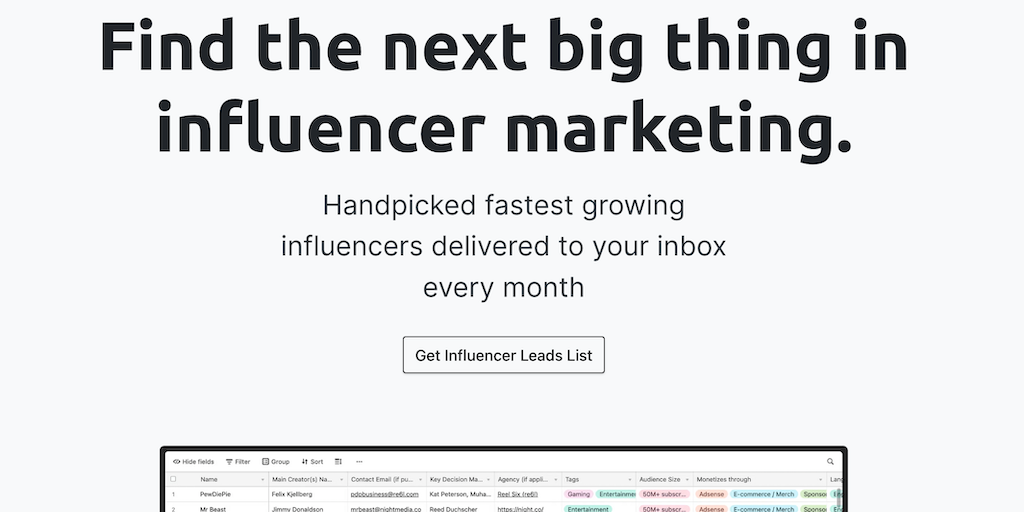 Influencer Leads List - Find the next big thing in influencer marketing | Product Hunt