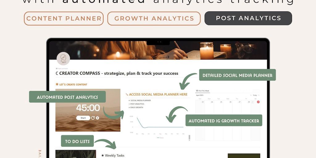 Creator Compass is an ALL-IN-ONE solution that content creators and businesses can use within Notion. Plan your social media content detailed and TRACK your Instagram growth and post analytics with ou