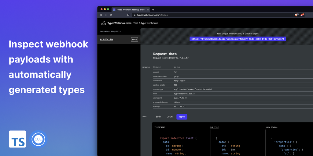 TypedWebhook.tools - Inspect webhook payloads with automatic type generation | Product Hunt