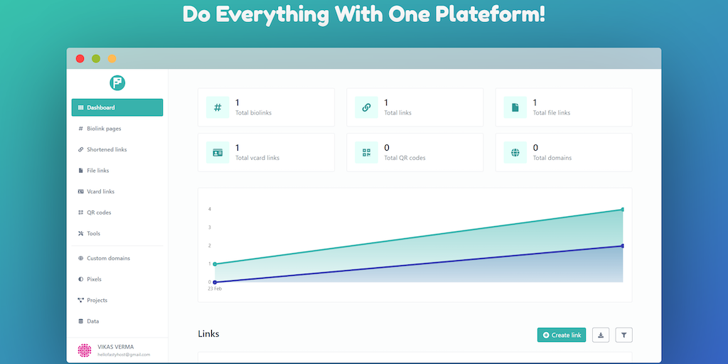 A website with a variety of services that help users do things like make custom QR codes, shorten URLs & make bio link pages. The website makes it easy & convenient for users to create these assets, a
