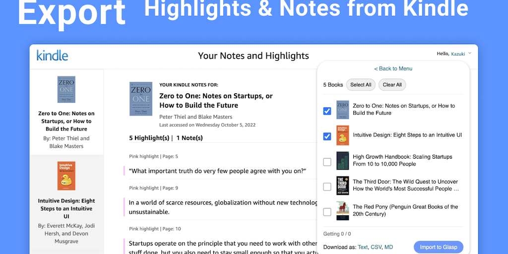 Kindle Highlight Export by Glasp - Export all your highlights and notes from Kindle in 1-click | Product Hunt