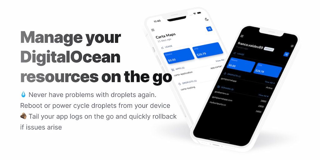 Mission Control is the must-have mobile app for managing your DigitalOcean resources on the go. You get total control to your Apps, Droplets, Managed Databases, DNS and more.