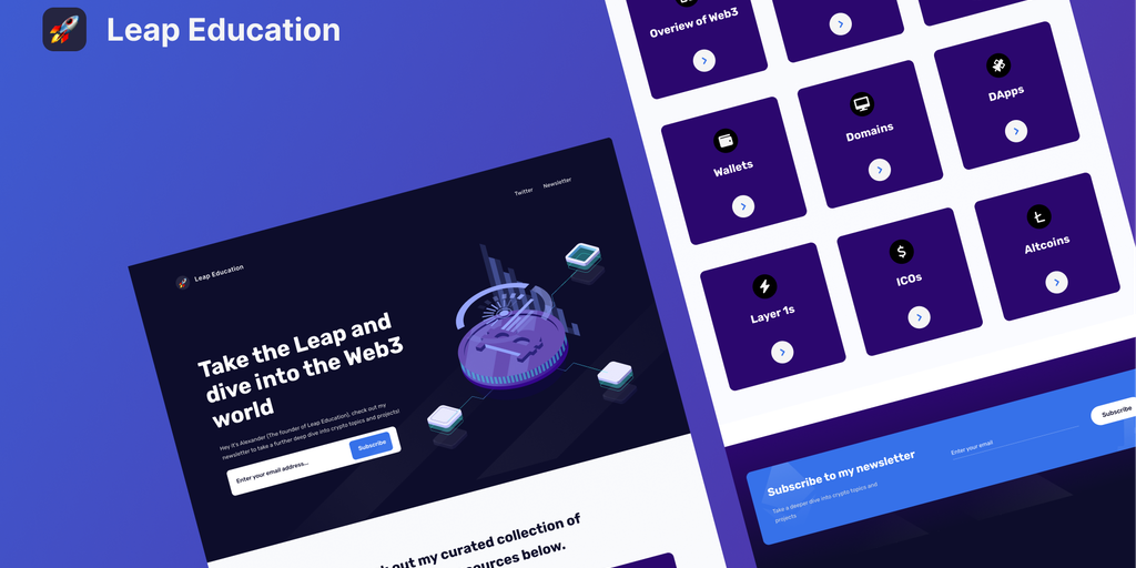 Leap Education is a hand-curated free online Web3 educational hub. Check out links to high-quality articles to learn about things like Web3, DeFi, DAOs, NFTs, and more. Start learning now 👇