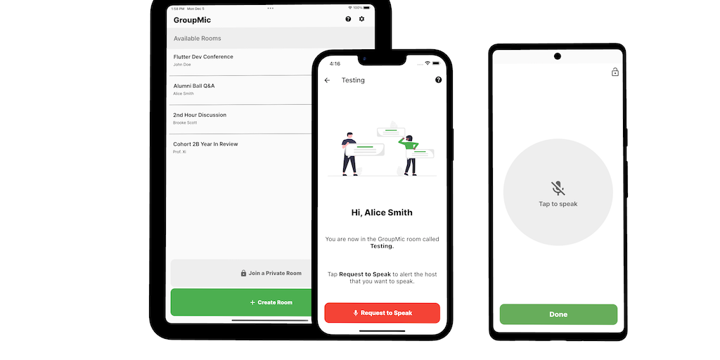 GroupMic allows you to streamline in-person meetings, conferences, presentations, and Q&As by eliminating the need to pass around a wired microphone. Audience members can send speak requests from thei