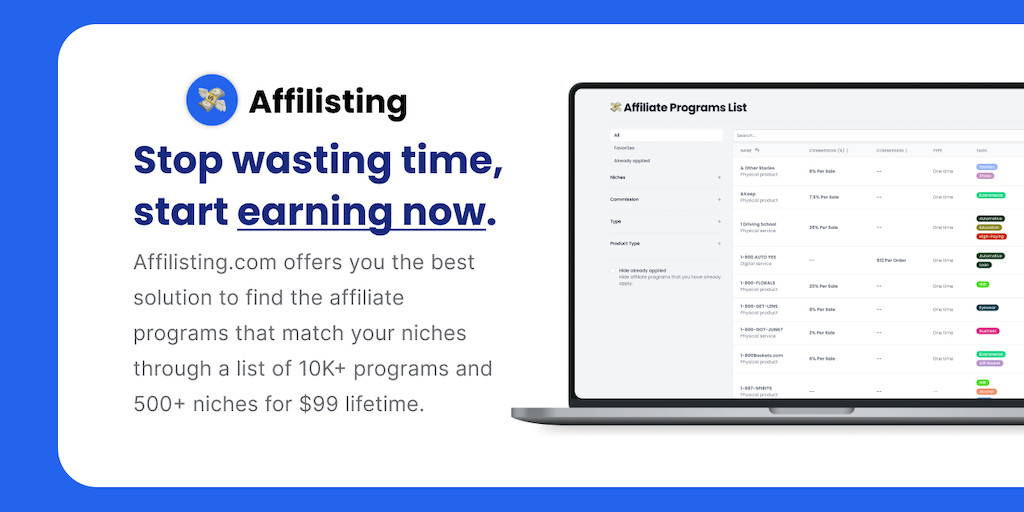 Affilisting - 10K+ affiliate programs across 500+ niches for $99 | Product Hunt
