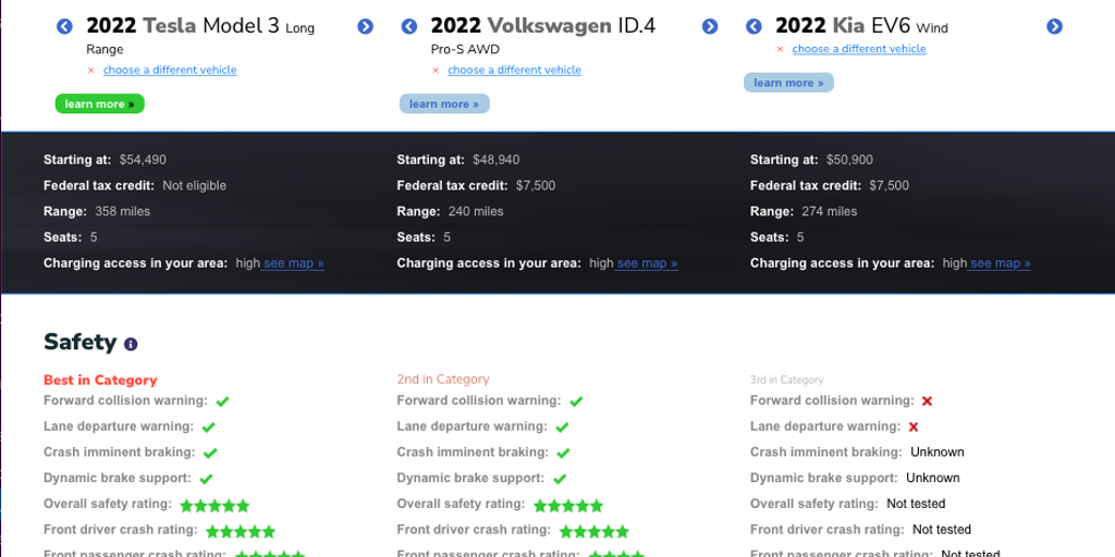 Electric Driver provides personalized electric vehicle recommendations ranked by how well they suit your lifestyle.