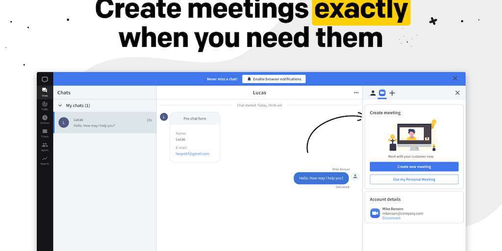 Take your chat support to the next level, resolving the most difficult cases through Zoom meetings. You can start a Zoom straight in the LiveChat app during the conversation with your client.