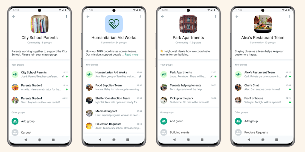 Communities like neighborhoods, parents at a school, and workplaces can now connect multiple groups together under one umbrella to organize group conversations on WhatsApp