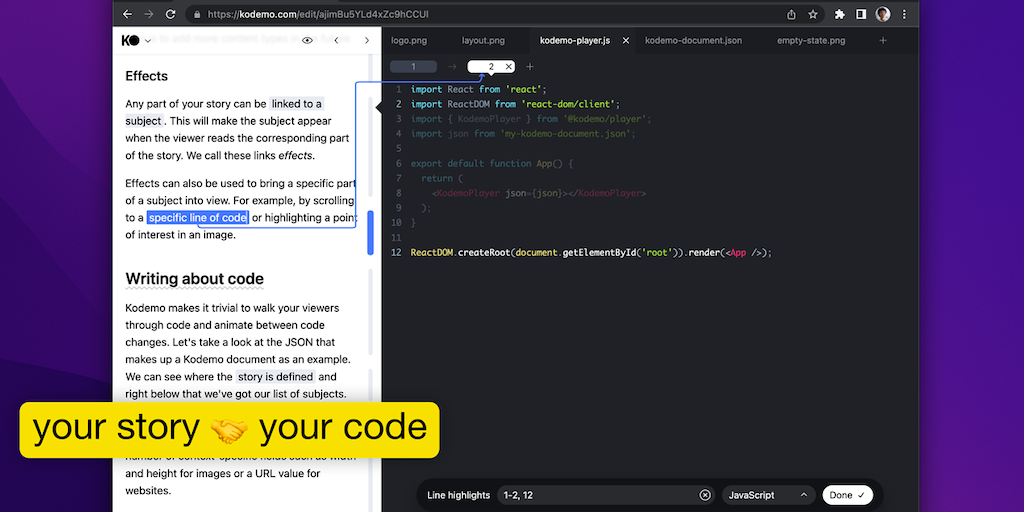 Kodemo lets you write technical documentation and code tutorials in a format that is intuitive and fun to read. It's perfect for walking readers through changes to code, images and more. Plus, it's op