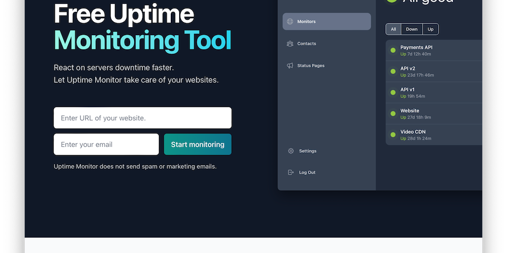 Introducing Uptime Monitor - the free, easy-to-use tool that keeps your website up and running 24/7. With instant alerts and real-time status updates, you'll never miss a moment of downtime again. Get
