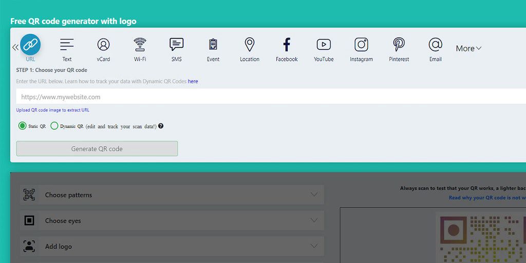 Free QR code generator is a tool that allows you to create any free static QR code for your business. You can customize and tailor your static QR codes with logo to match your brand identity. QR codes