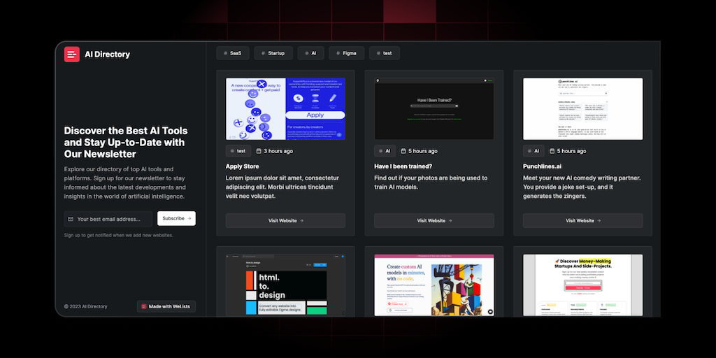 WeLists enables you to create website directories, share your finds with your community, and send personalized newsletters to engage your audience. Unlock your directory's potential now!