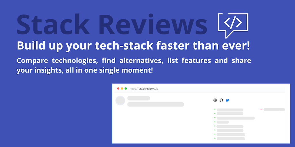 Stack Reviews is a platform where you can easily compare technologies, find alternatives, list features and share your insights, all in one single moment!