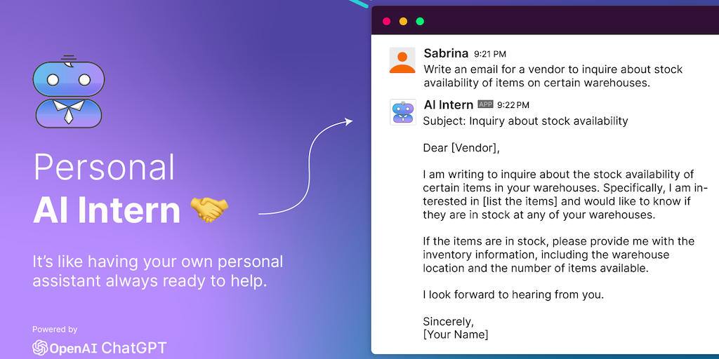Ai Intern - ChatGPT powered Personal Slack Assistant | Product Hunt
