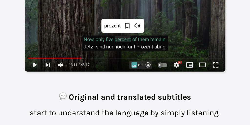 Improve your listening skills and vocabulary by simply watching videos and series with dual captions. 💬 Original and translated subtitles 📘 Phrasebook ⚡️ Quick access to translation in popup 🔊 Pronunc