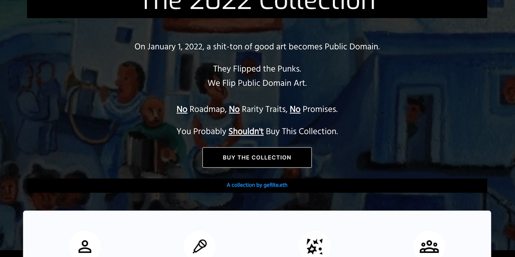 We take 25 of the non-shittiest artworks to enter the public domain on January 1 2022. Then flip them. And voila, your very own PHUBLIC COLLECTION art work.