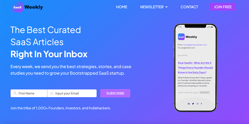 SaaS Weekly - The best curated SaaS articles right in your inbox | Product Hunt