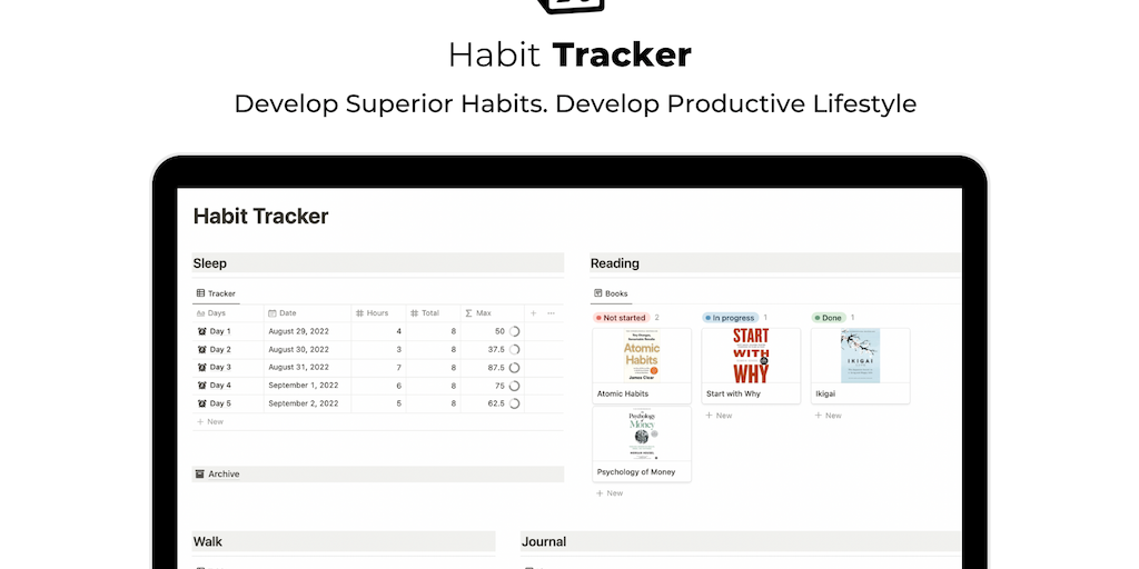 Most people feel miserable because they fail to develop good Habits in their Life. Instead, their wrong habits keep them sad, stressed and anxious. With the Notion Habit Tracker - You can live a healt