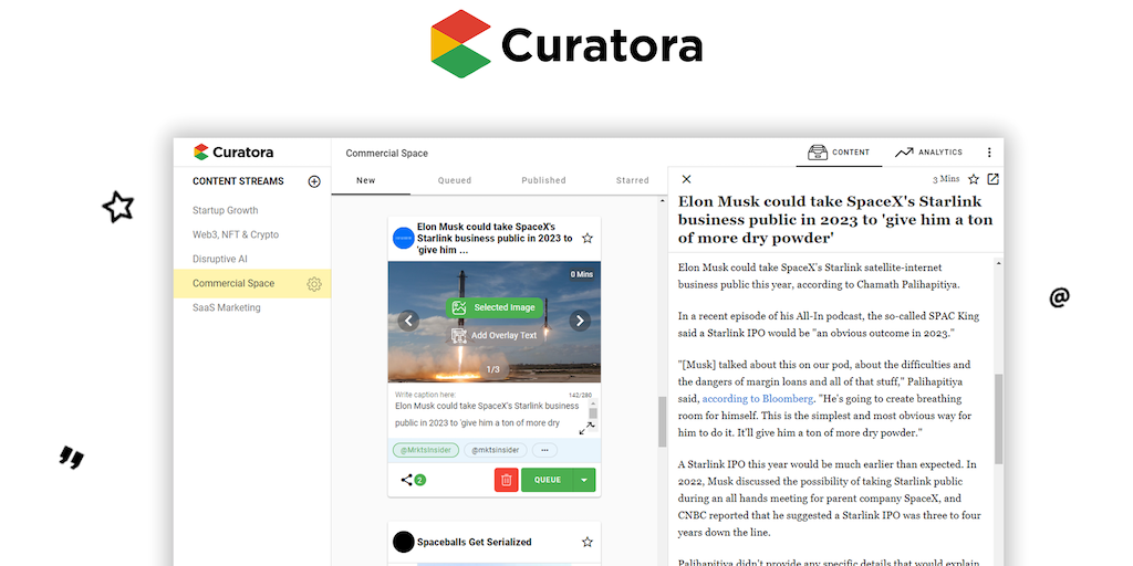Are you struggling to keep your social media streams active with fresh and engaging content? Curatora is a content curation platform that helps you easily find and share highly-relevant content to kee