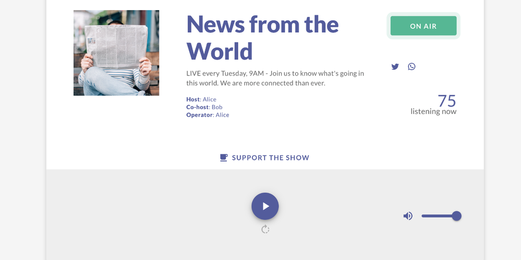 With SHER you can have your own LIVE audio show. Invite co-streamers with 1 click, play files and more. No install required. Share your audio stream privately or go public and make your show discover