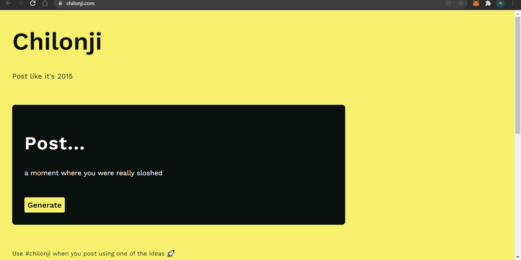Chilonji wants people to post like it's 2015 - that is, without a care for grids, layouts or aesthetics. Use the site to get random post ideas for Instagram and Twitter, then use #chilonji when postin
