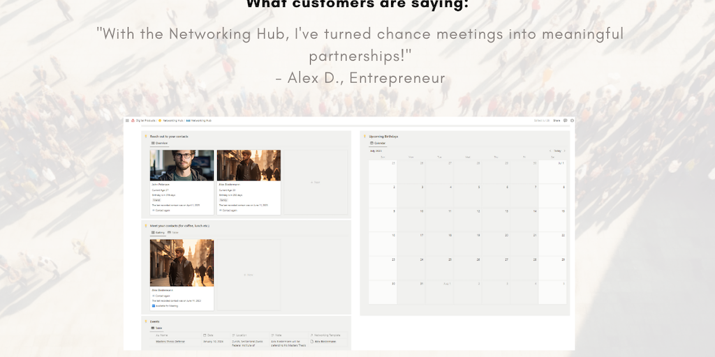 Connect. Remember. Thrive. 🌐 Unveiling the Networking Hub for Notion – where every contact becomes a meaningful connection.