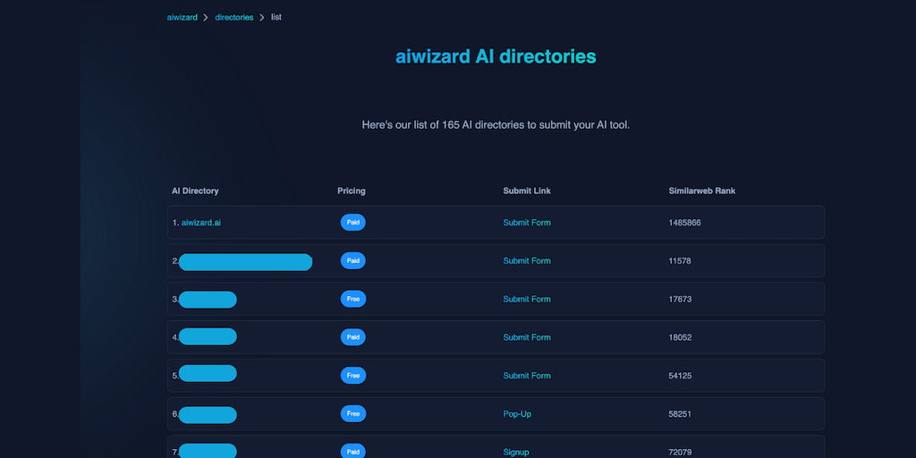 aiwizard AI directories - Submit your AI tool to 172+ AI directories for more traffic | Product Hunt