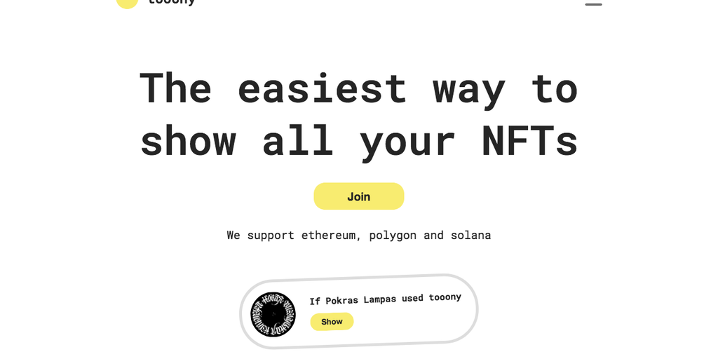 tooony - The easiest way to show all your NFTs | Product Hunt