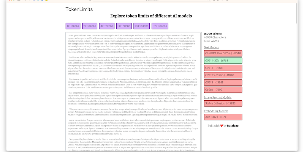 Tokenlimits - Check if your input satisfies the token limit of an AI model | Product Hunt