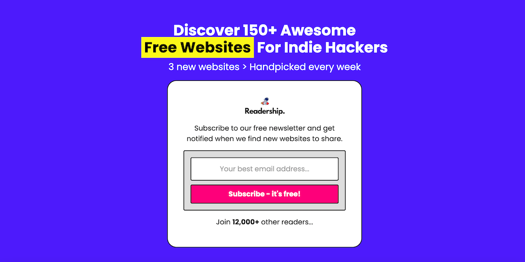 Readership.fyi - Discover 150+ awesome free websites for Indie Hackers | Product Hunt