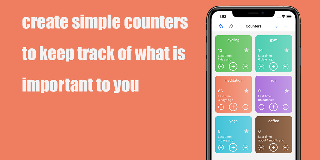 First-class integration with iOS ecosystem. Designed to integrate with your life and be simple and effective at what it does - counting what's important to you. We give counters, you give them meaning