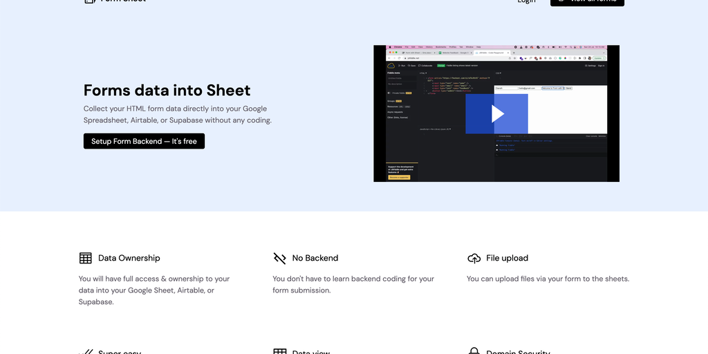 Form with Sheet - Collect HTML form data directly into your Google Spreadsheet | Product Hunt