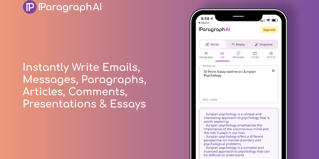 ParagraphAI is the first AI writing assistant on iOS, Android & Chrome powered by GPT-3. Instantly generate flawless 99.9% plagiarism-free original text. Built by engineers from MIT, Meta & OpenAI, Pa