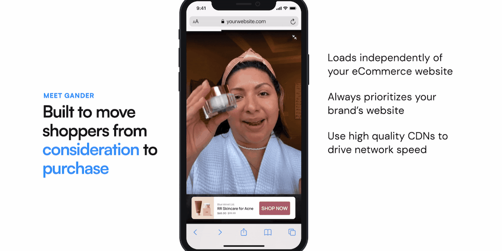 Before capturing the hearts and minds of consumers, you have to capture their attention. Gander enables brands to spin up high-converting, attention-grabbing, video UGC pages with just a few lines of