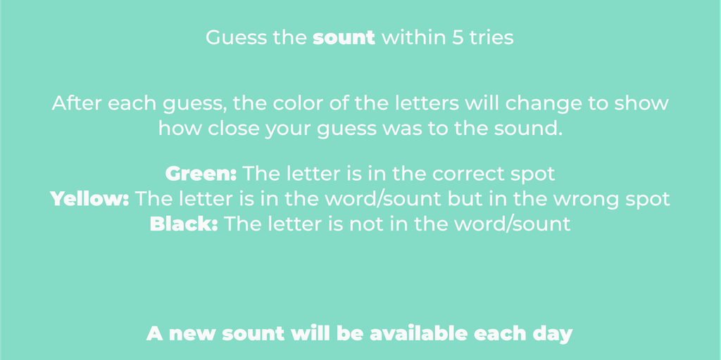 sount is a sound guessing game inspired by Wordle. You have 5 guesses to find the sound of the day based on the sound that's played. Once you've completed your guesses, you can share how you did 🙌