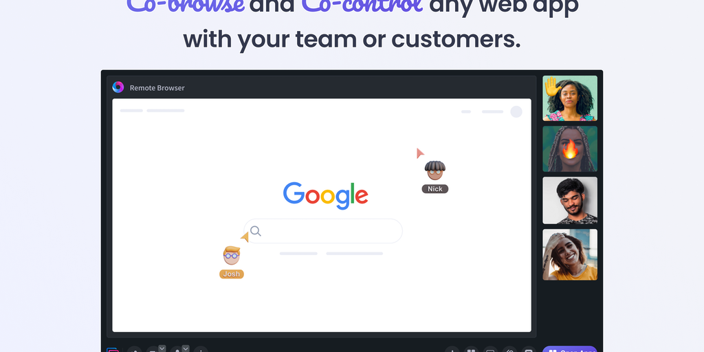 Turn any web app instantly collaborative, with no download. Use it with teams and customers. For sales demos (let prospects test drive, ⬆️ close rates), support (show instead of tell, ⬇️ handle time &