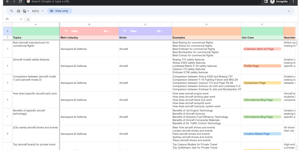 A database of 10,000+ keyword ideas for programmatic SEO from 1,000+ different niches that you can use to shape your pSEO strategy. Each keyword has 15 data points to explore.
