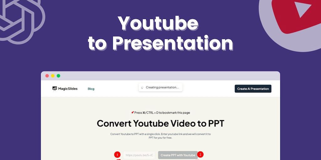 Youtube To PPT - Enter Youtube link and we will convert it to PPT using AI | Product Hunt