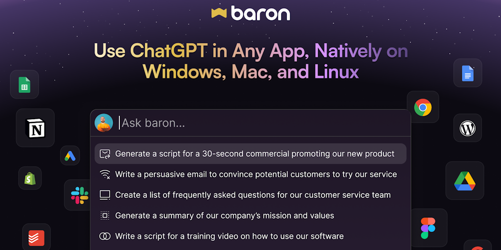Baron AI - Use ChatGPT in Any App, Natively on Windows, Mac, and Linux | Product Hunt