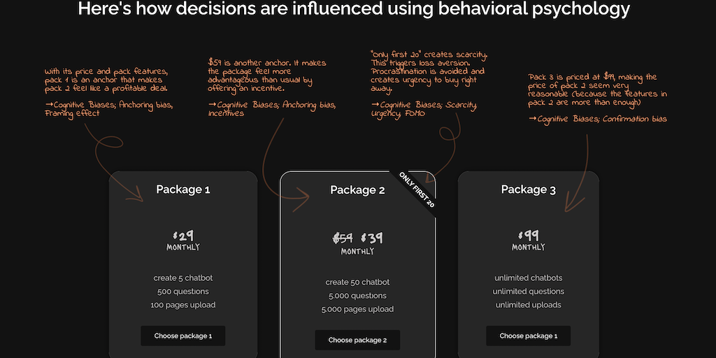 I pick a product/service and I design pricing using behavioral psychology, decision science, cognitive biases, and nudges. Because pricing psychology is leverage. It’s free.