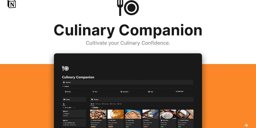 Say goodbye to the hassle and stresses of cooking. Culinary Companion is a comprehensive, user-friendly Notion hub that keeps you in top culinary form. Whether you're an experienced chef or a beginner