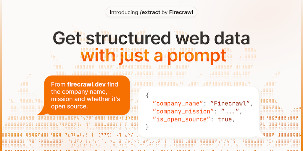 Firecrawl's /extract endpoint allows you to get structured web data with just a prompt—perfect for lead enrichment, KYB automation, or no-code workflows. Write a prompt, get clean JSON, and extract we