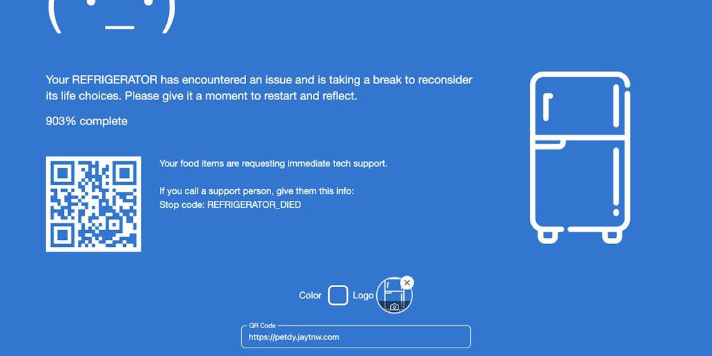 Create a fake Windows BSOD meme easily! Customize it with your own text, images, QR codes, and background colors. It's free and simple to use.