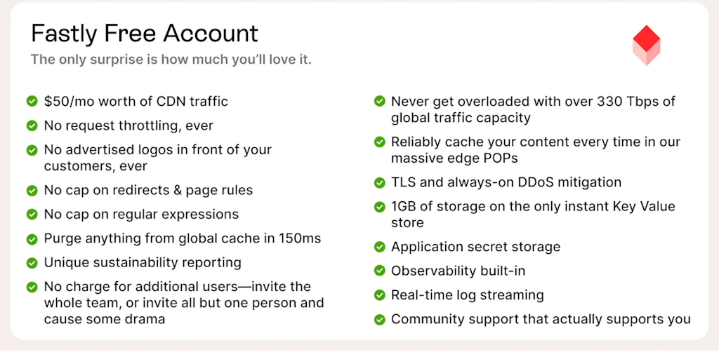 Fastly Free Accounts - Build something amazing! CDN, Observability, KV Store + more | Product Hunt