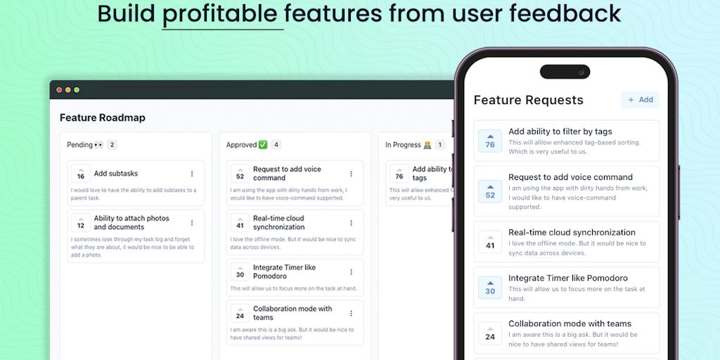 Build profitable features from user feedback. Drive your product's growth with clarity by letting users post and vote on the features they want. 🚀 Features.Vote offers the easiest way to embed voting