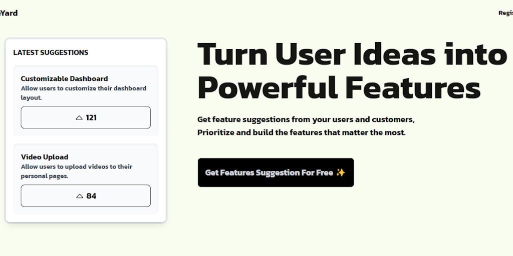 FeatureYard is a free app that lets you create a suggestion page to gather user feedback and feature ideas. Enhance your project with insights directly from your users. Start building things that real