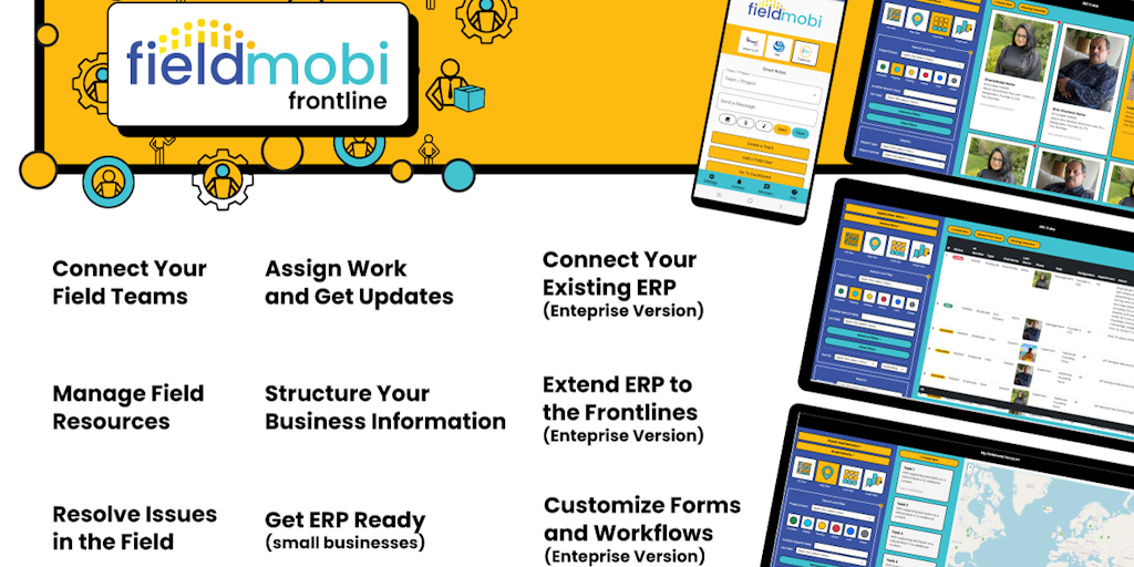 A mobile-first field data and team management platform that can be used in isolation or integrated with ERP to manage field teams, business information, frontline resources (with issue reporting and r