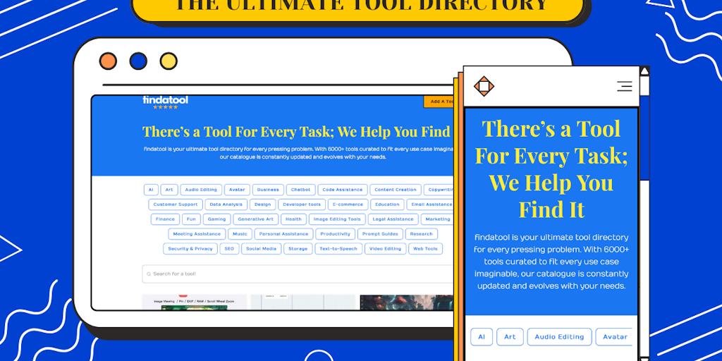 findatool is your ultimate tool directory for every pressing problem. With 6000+ tools curated to fit every use case imaginable, our catalogue is constantly updated and evolves with your needs.