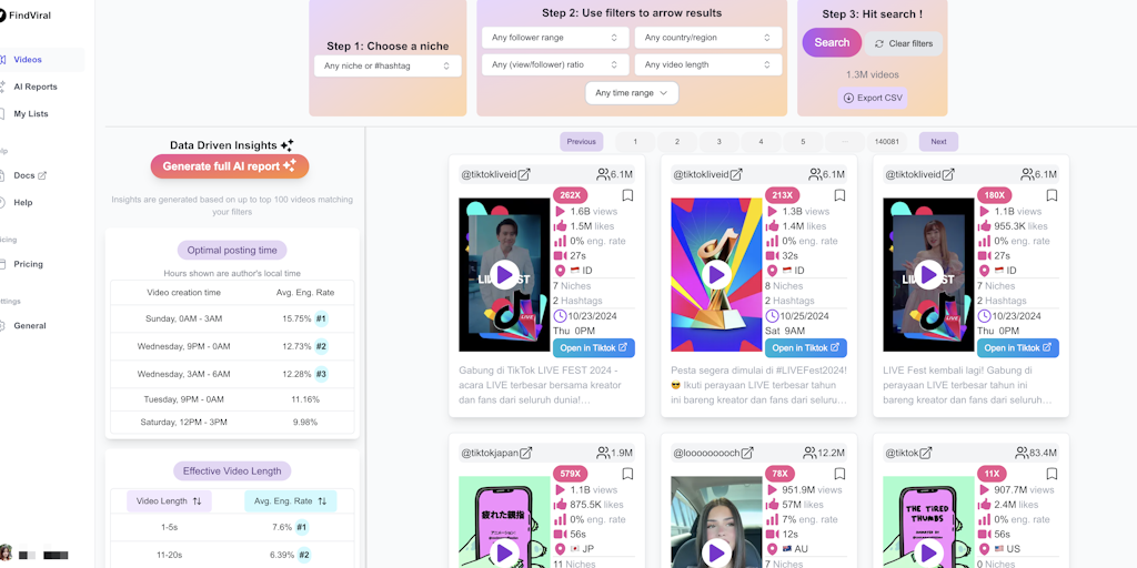 FindViral - Find viral TikTok videos and boost your growth with AI | Product Hunt