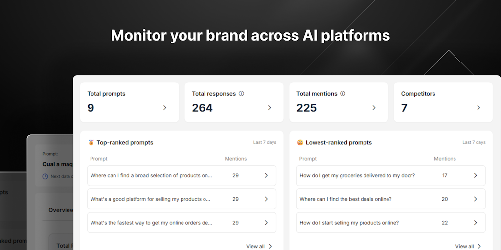 Know how your brand appears in ChatGPT, Gemini, Perplexity and more. Compare with competitors, find opportunities, and get clear steps to boost your AI visibility.